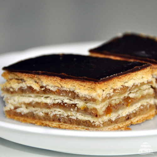 Házi lekvárral és dióval készült finomság. Legalább 25*25cm-es lapokból készül, szeletelés nélkül.Szeletelés +300 Ft